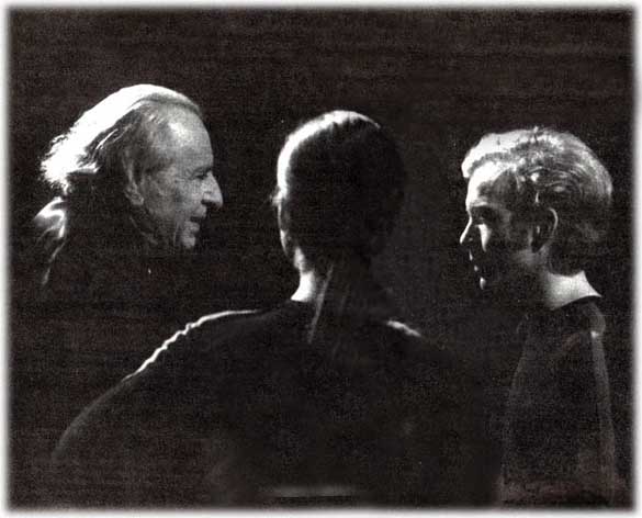 "In the work of improvisation, DECROUX had differents kind of responses to our efforts: mockeries, warm praises, anger or compassionate kindness.… Commentaries such as "it is necessary that you sing with your muscles" or "you did not find the rhythm of the thought" or "do not try to be interesting, be simple." I remember of a day when he asked me "to empty the apartment for that God can come there to live." (...)